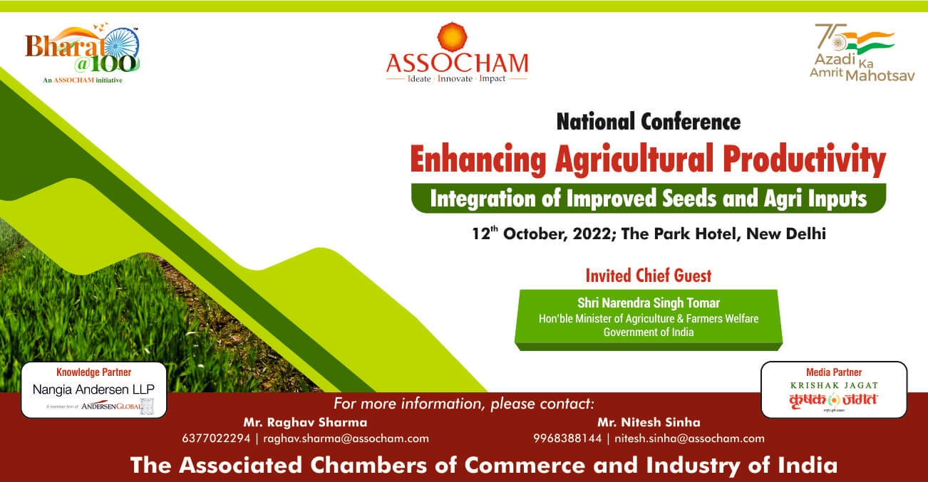 Therefore, with a view to creating awareness for improved farm inputs, ASSOCHAM is organizing a National Conference on Enhancing Agricultural Productivity: Integration of Improved Seeds and Agri Inputs on October 12th, 2022, at The Park Hotel, New Delhi.